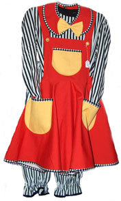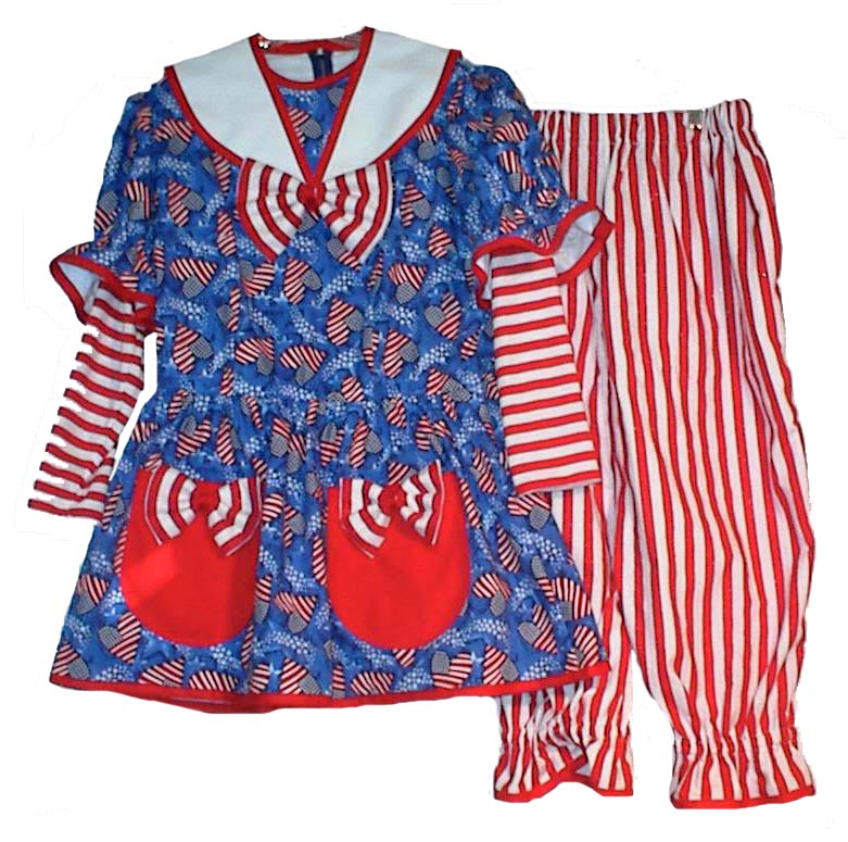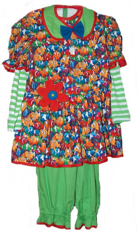 These are example of our Swimsuits we make, the green one has a clown fish print and the red and blue one has hart flags. But as these are only examples they are not in stock! If you like this style please contact me, so we can customize one just for you.